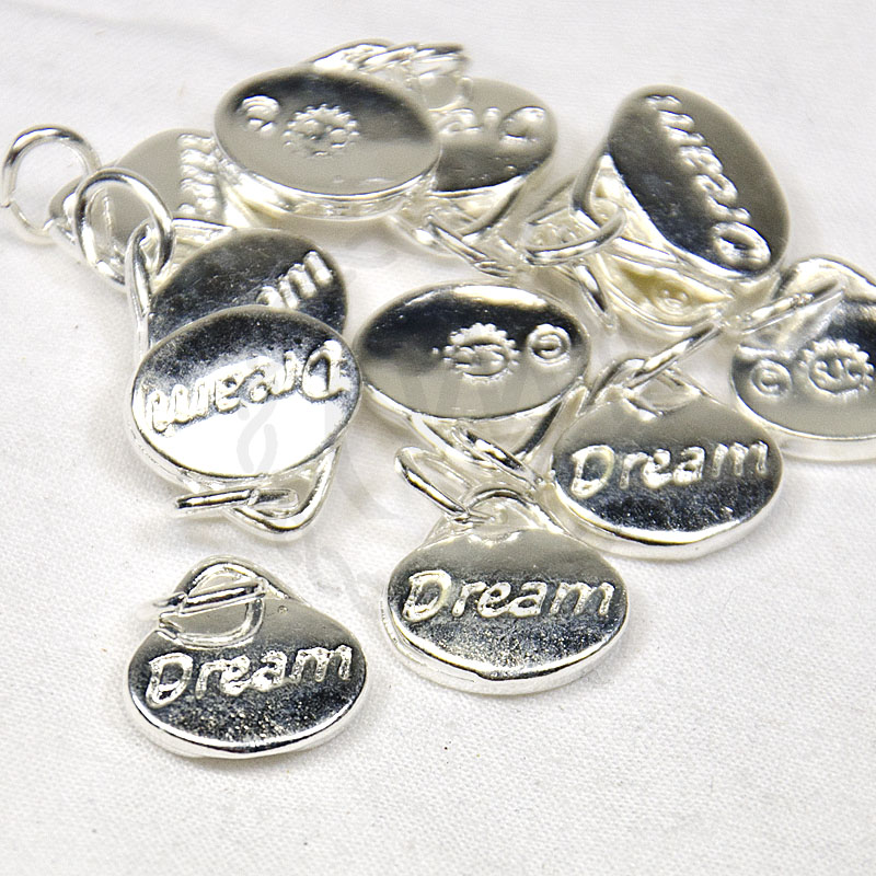 Pewter domed message charms - silver plated