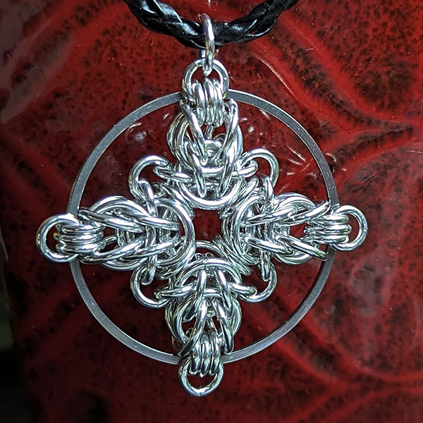 Create this eye-catching Crux Quadrata Pendant. Suitable for an Experienced Beginner Mailler.