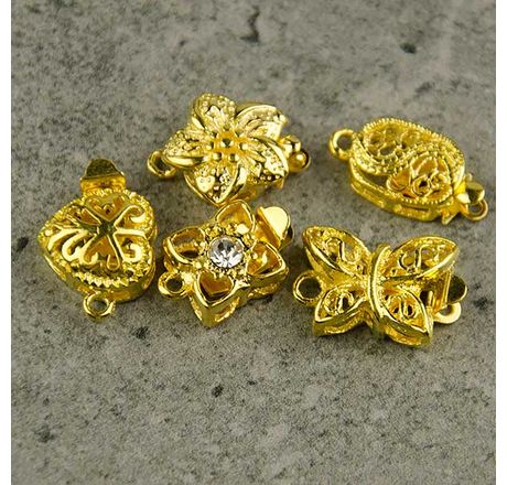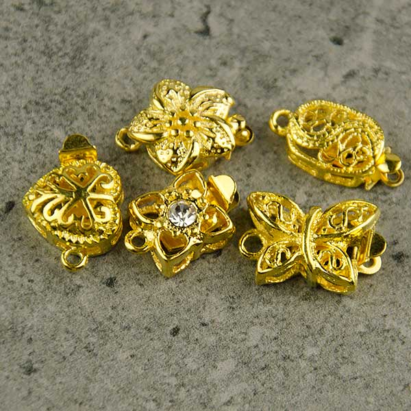 Mixed bag of clasp. All are box clasps, brass alloy with gold plating.