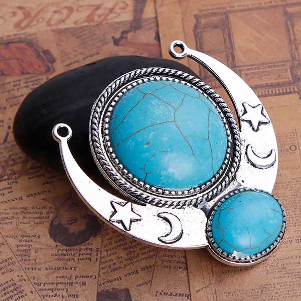 Antique Silver Plate with Imitation Turquoise. 5.8cm x 5.6cm.