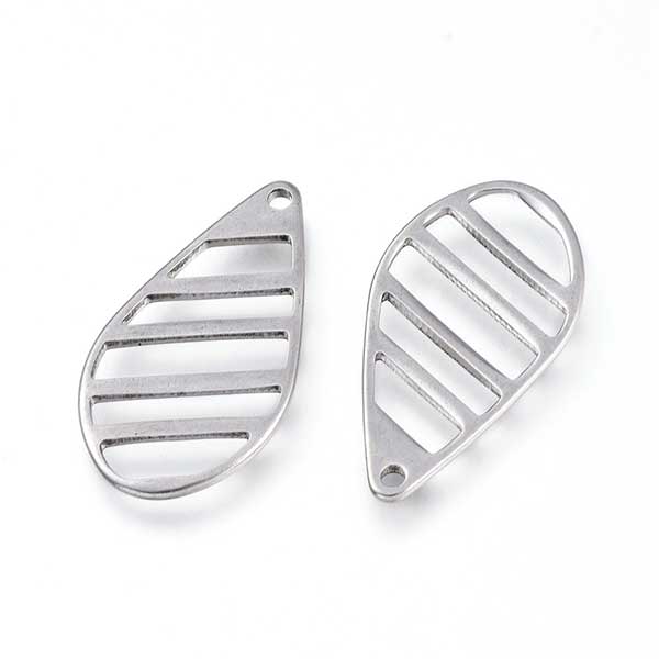 1 bag contains 6 Pendants. Tear Drop Shaped with stripes Stainless Steel (304) Pendant